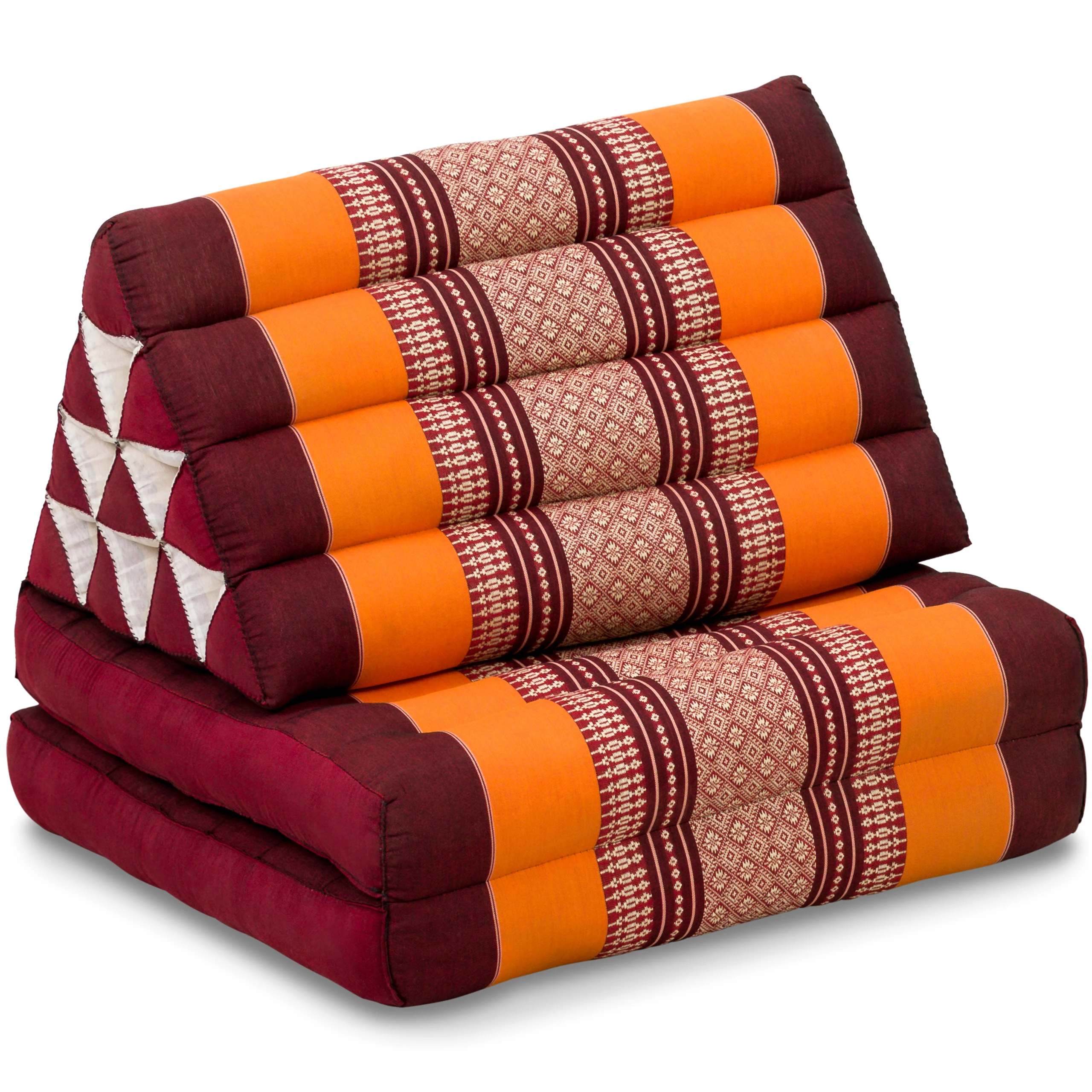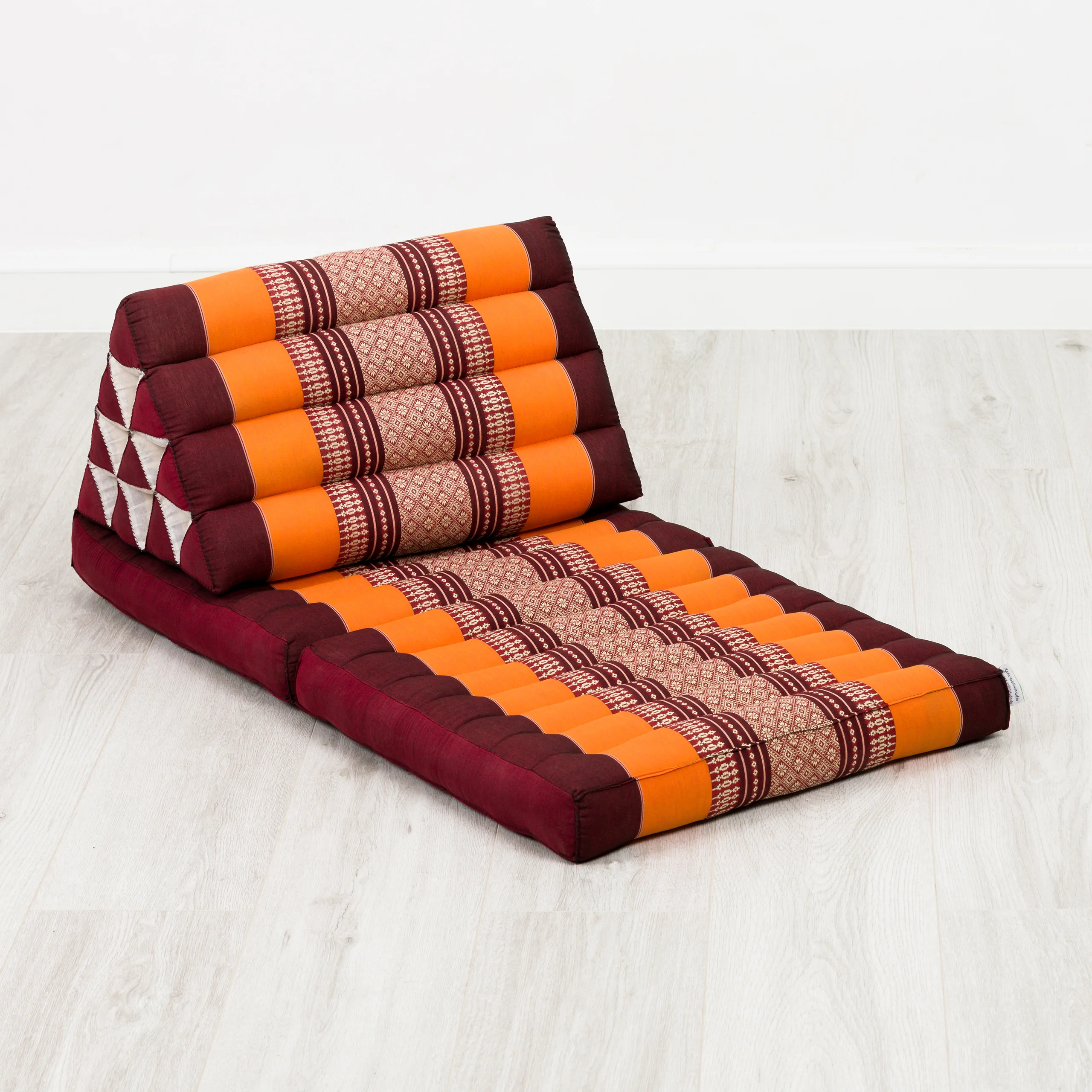 De unieke driehoekige vorm van het kussen is een bekend fenomeen in Thailand en biedt een kenmerkende, zachte ondersteuning om op te zitten en te liggen. Het Thaise kussen kan moeiteloos worden uitgeklapt, en in zijn uitgevouwen staat presenteert het zich als een uitnodigend groot ligoppervlak. Het geïntegreerde driehoekige kussen fungeert als rugleuning, en door zijn vormvastheid is het kussen handgemaakt en stevig – een perfecte metgezel voor ontspannen momenten!
