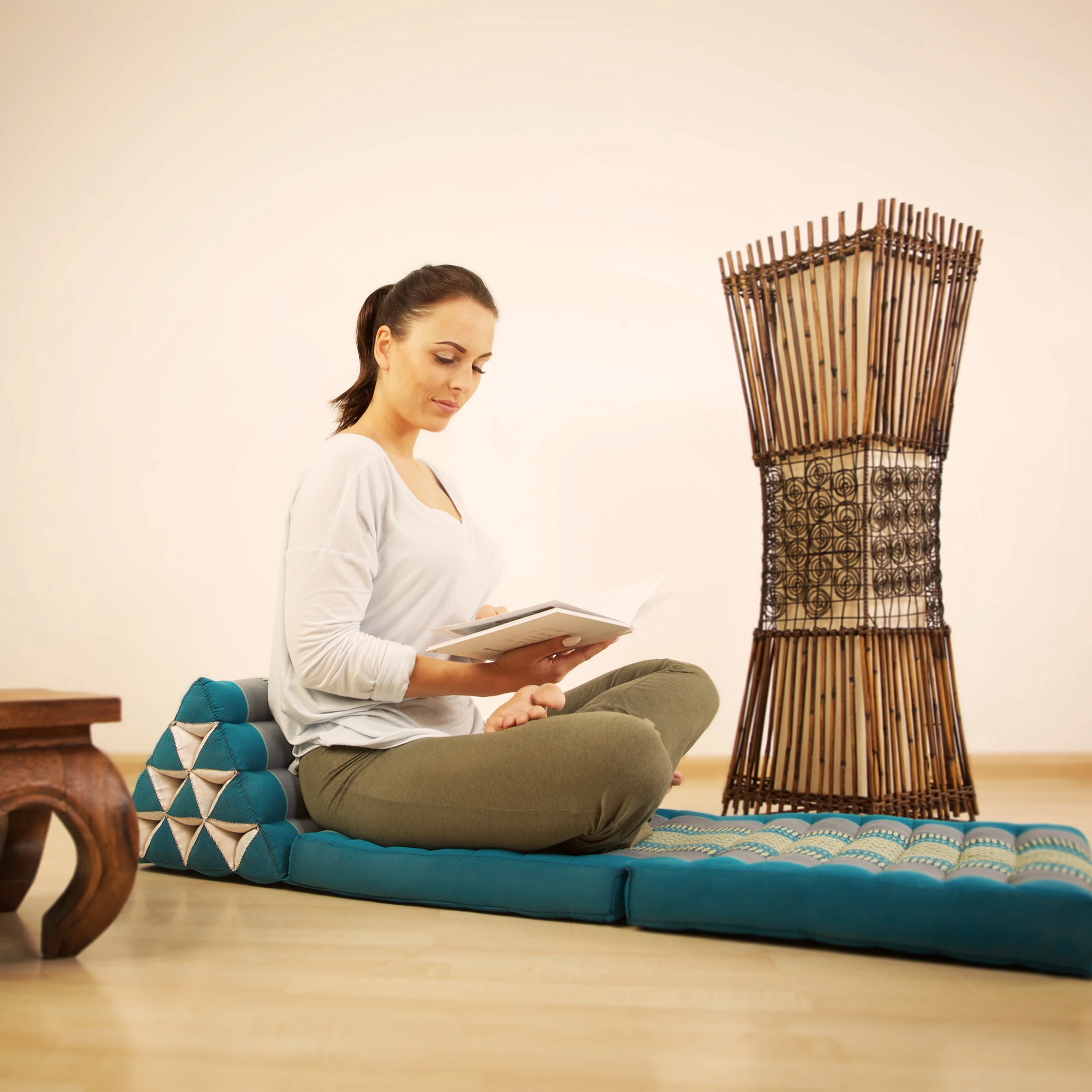Laat na een vermoeiende dag de rust op je inwerken met een kalmerende thee op jouw favoriete plekje, leun achterover met een boeiend boek of geniet van een korte pauze met meditatie – vooral tijdens deze momenten wil je je uiterst comfortabel voelen. Om overal van jouw vrije tijd te kunnen genieten, wordt jouw dagelijks leven vergezeld door het Thaise kussen met 2 vloerdelen. Met slechts één handbeweging maak je het ruimtebesparende kussen klaar, waardoor het dienst doet als de ideale ligstoel voor de ontspannende momenten van de dag.